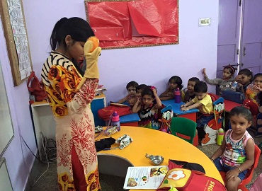 The Audio Visual Rooms are set up with world-class technology-enabled teaching tools equipped with Large Format LCD or Plasma Screen/ Projector, Audio/ Video Player and Computers with the objective of making teaching more interesting and effective. The teaching comes alive with teaching resources such as animation clips, videos, pictures, rhymes; stories, etc. are shown to children using a projector and a big screen. Our multimedia corner have Touch Screen Computer so that children can learn the concepts of shape, colours, blocks, etc. in an easy and interesting way.
